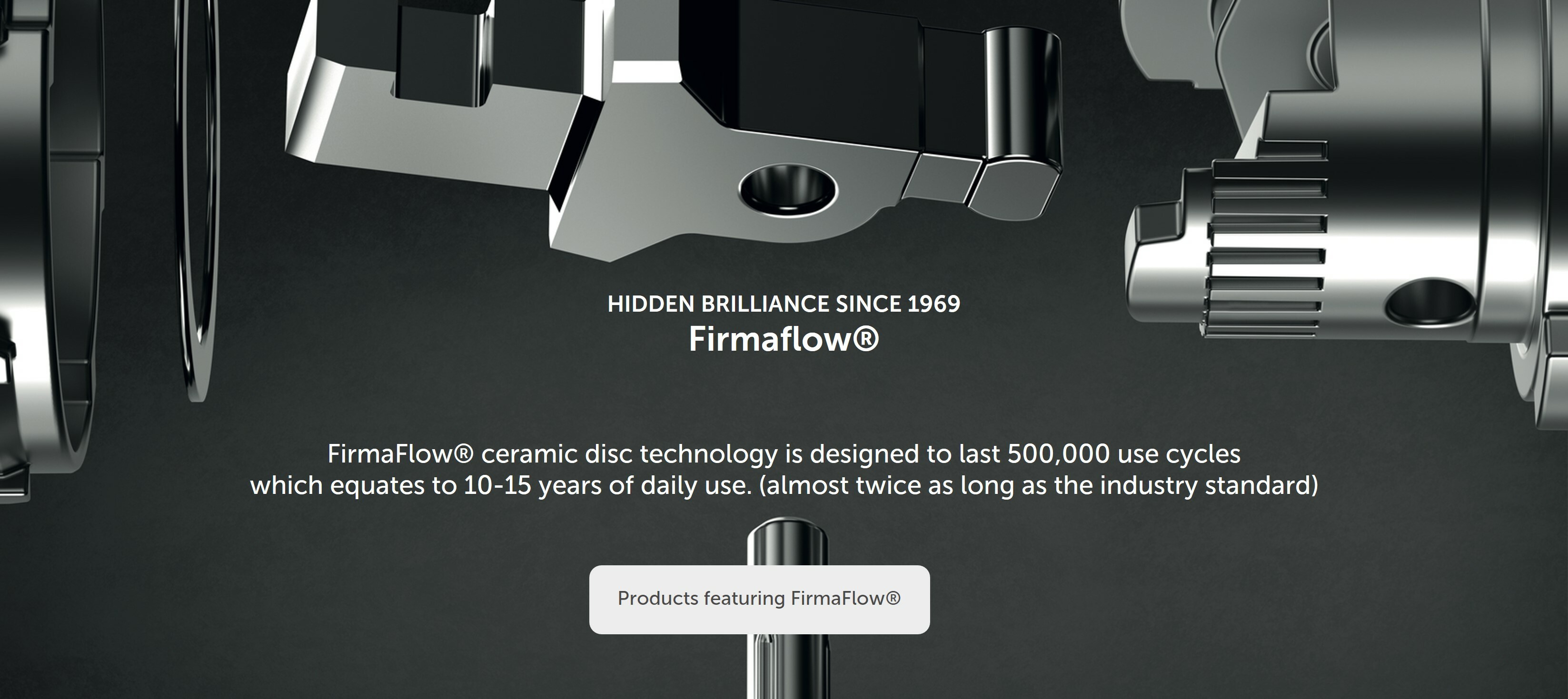 其獨特設計的FirmaFlow®陶瓷心,經測試於正常使用下,可使用約50萬次,相當於10~15年的壽命。(相當於市面一般陶瓷心的兩倍壽命)
